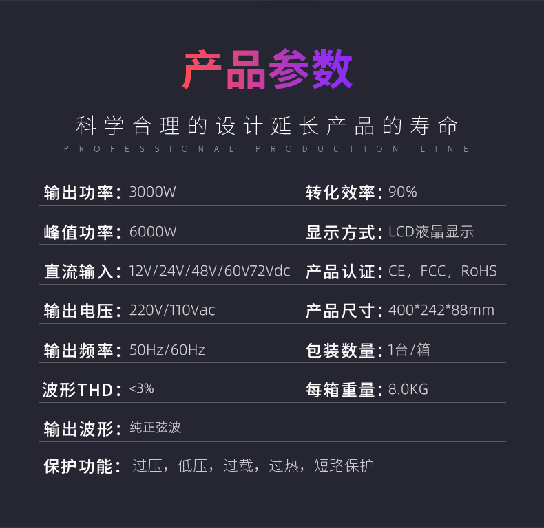 YLRX3000純正弦波逆變器【LCD液晶顯示】2019流行款